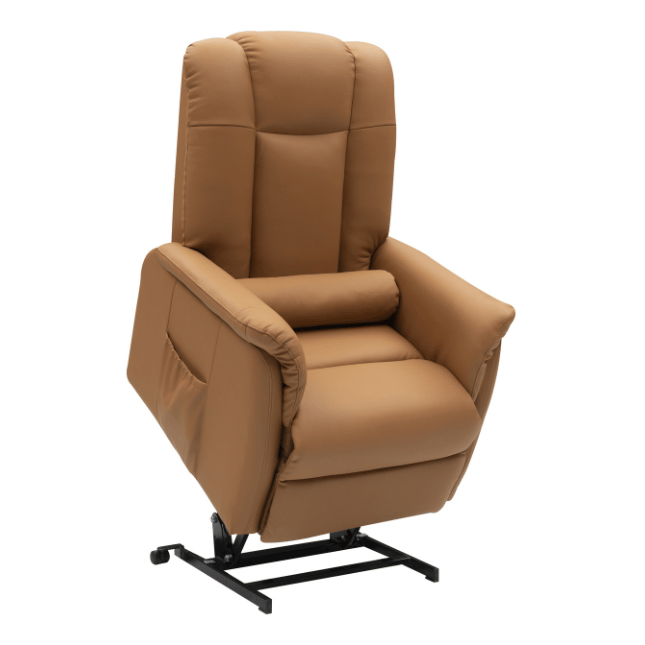 Concrètement, il s’agit d’un fauteuil releveur électrique qui incline doucement l’assise vers l’avant pour faciliter le passage de la position assise à la position debout. Plus besoin de forcer sur les genoux, les hanches ou le dos : le fauteuil vous accompagne dans le mouvement et réduit considérablement l’effort musculaire.